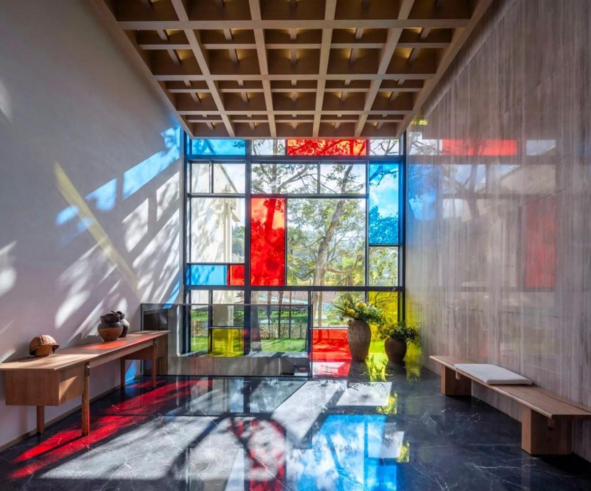 項(xiàng)目位于云南省玉溪市澄江飛大田,建筑師是以七彩的顏色來(lái)表現(xiàn),每棟建筑一種顏色,所以他每棟的名字叫做橙房子、藍(lán)房子、青房子等。