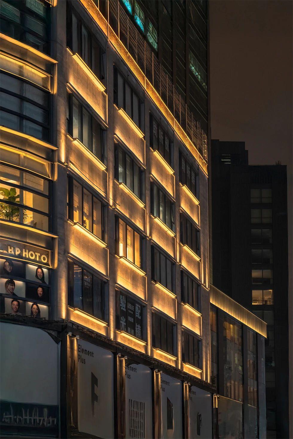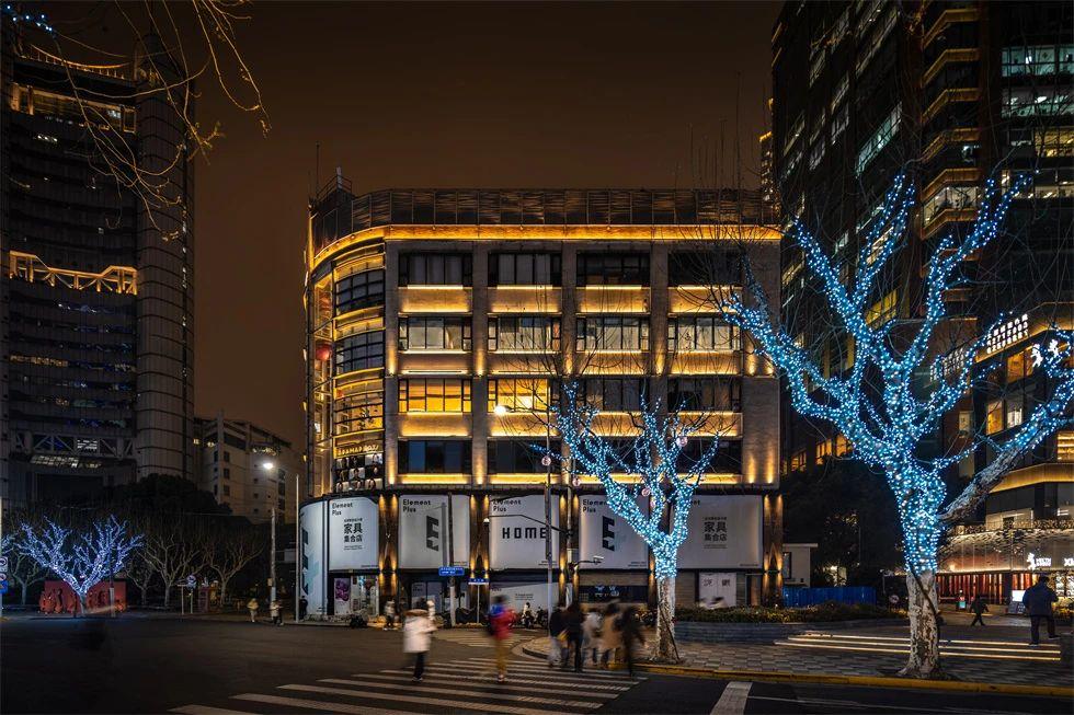 五月花商務中心的燈光改造以“融入與點亮”為核心理念。通過精準的立面投光技術,建筑的結(jié)構肌理被清晰勾勒,冷白色調(diào)燈光與周邊歷史建筑的暖光形成巧妙對比,既保持了商業(yè)街區(qū)的整體協(xié)調(diào)性,又彰顯了現(xiàn)代建筑的簡約與活力。