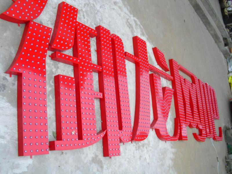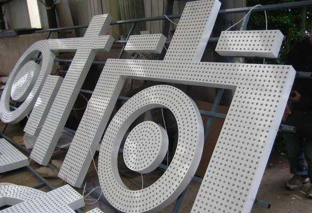• 1外露發(fā)光字 即鐵皮字,不銹鋼字,鋁字,鈦金字表面沖孔裝上LED單顆防水燈串。外露發(fā)光字的制作材料常用的有:亞克力板,鍍鋅板,不銹鋼,鈦金板。